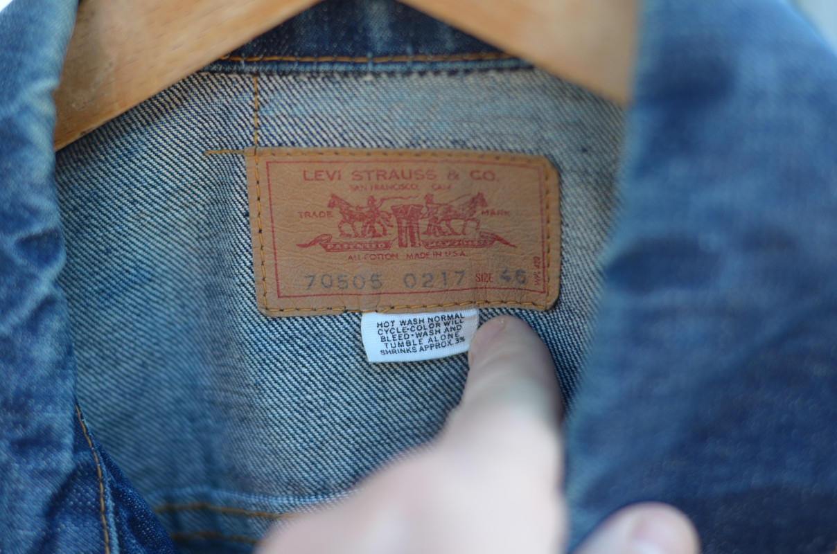 ![]() ![]() ![]() ![]() I believe it could be 1971 or just before. The denim is beautiful and feels vintage. The only things confusing me are that the neck tag is such incredible condition, have they made a repro with that style of care tag? Buttons have 52 something on them (think it's 9), I did think vintage jackets had shorter codes? |