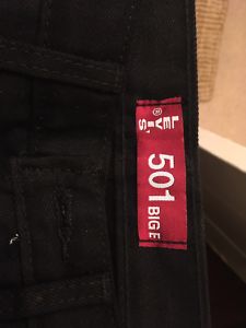 66 501 irregular with screen printed pinstripes really oversized havve shrunk a lot but still pretty huge for the tag. i wear these with a huge innercuff